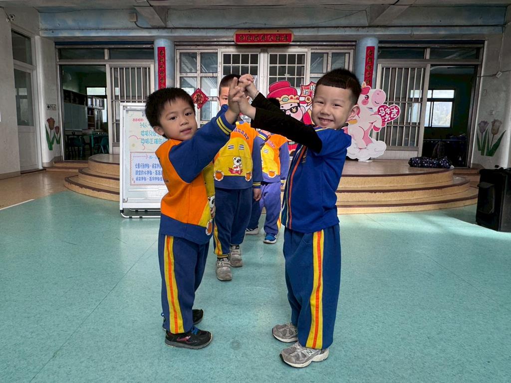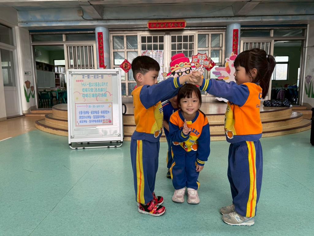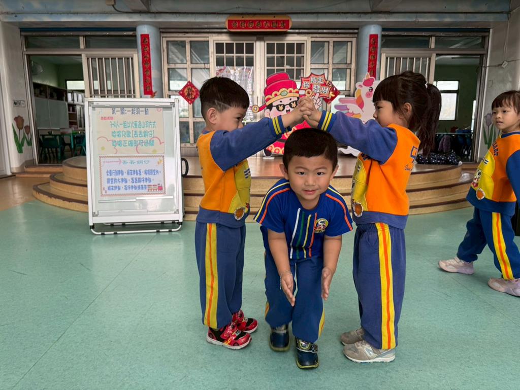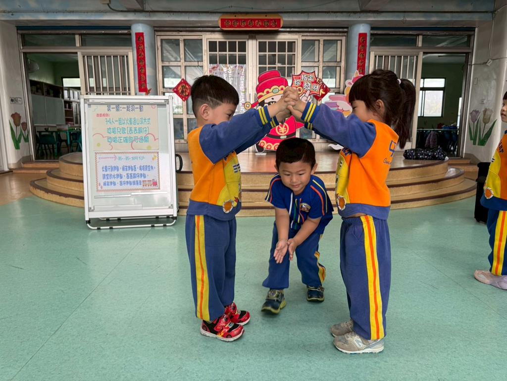 第一關~一起洞一動:4人一組以火車過山洞方式唸唱兒歌「丟丟銅仔」🚂