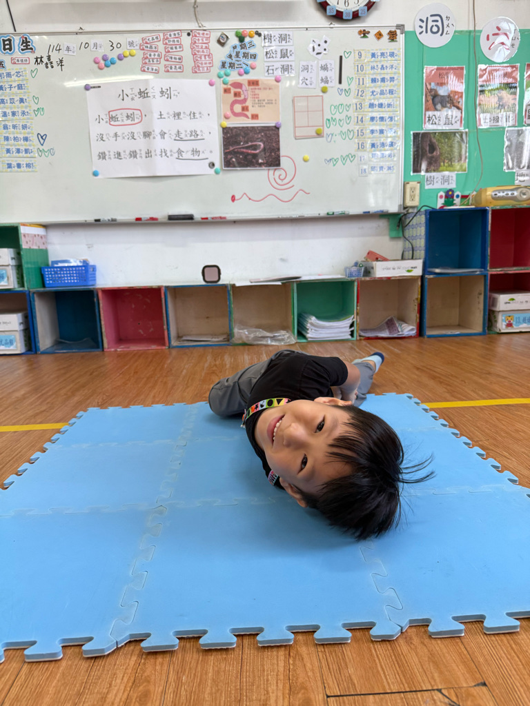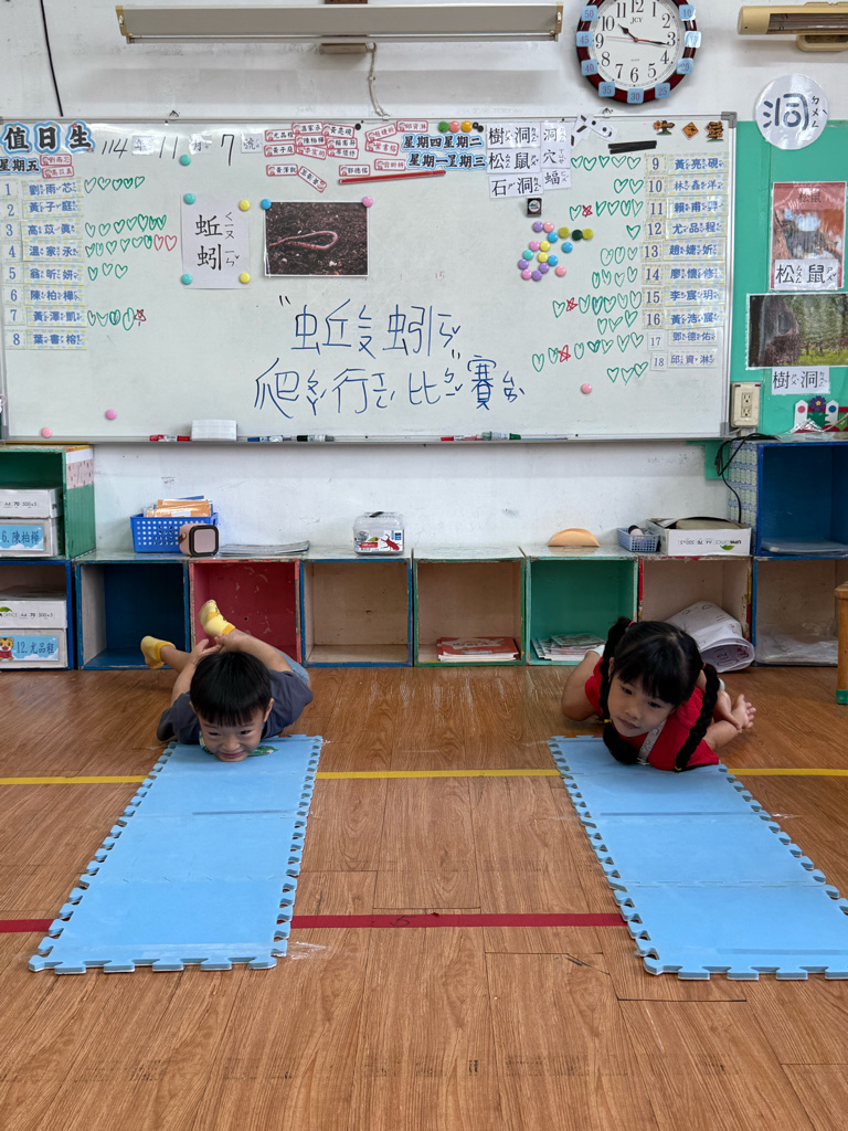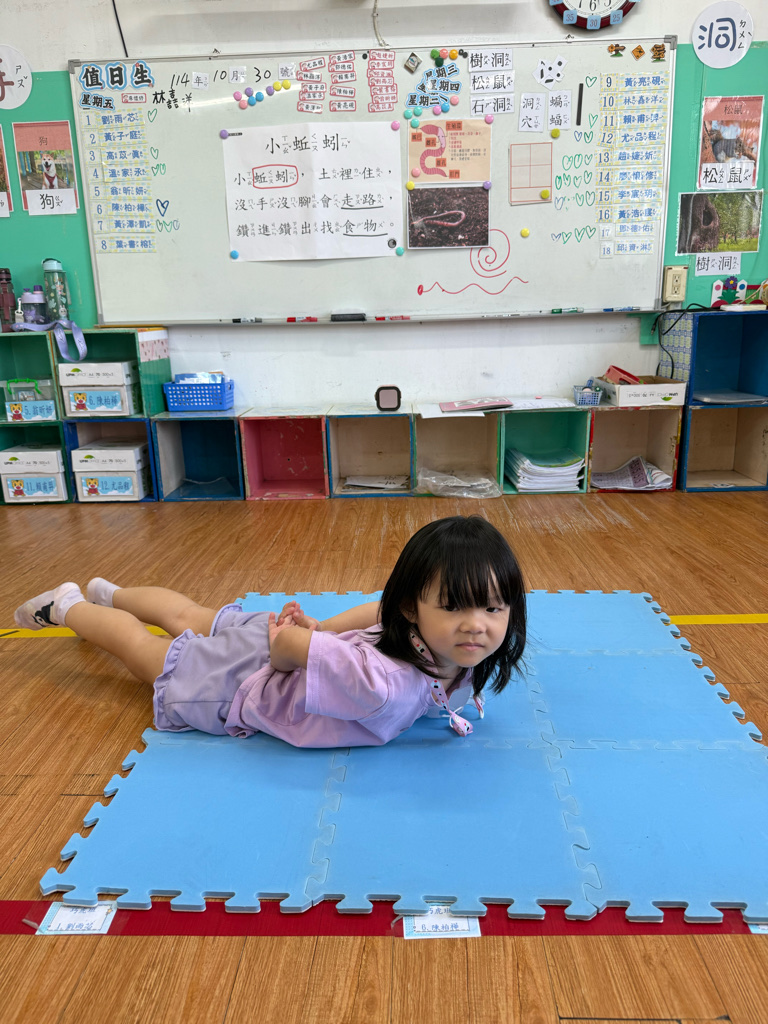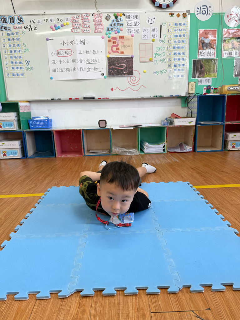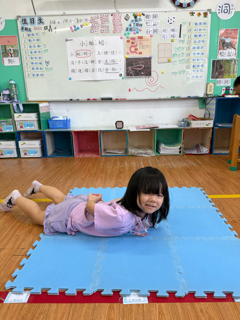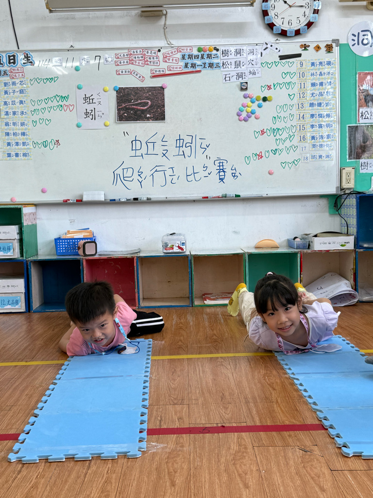 小蚯蚓沒手沒腳怎麼走路呢 一起用學蚯蚓用身體爬行 大家一起比賽