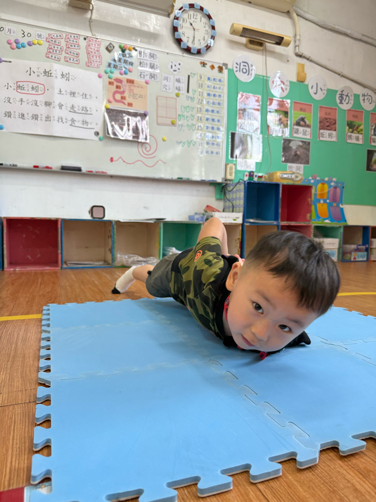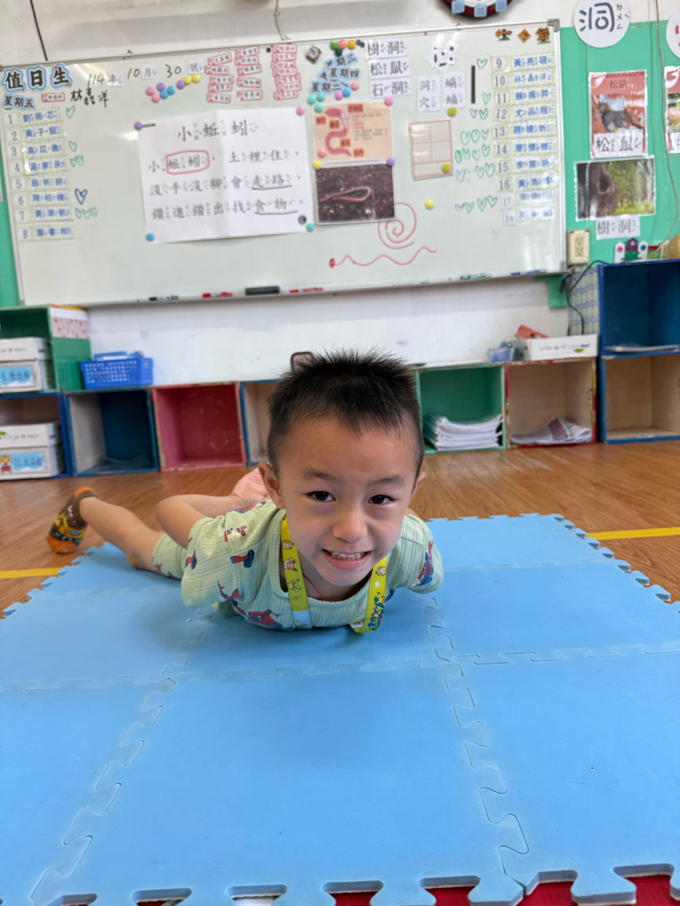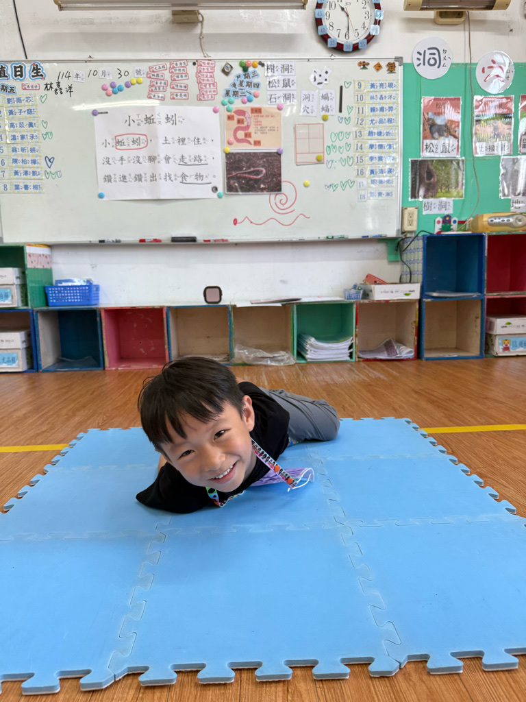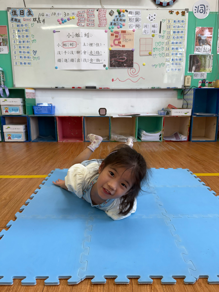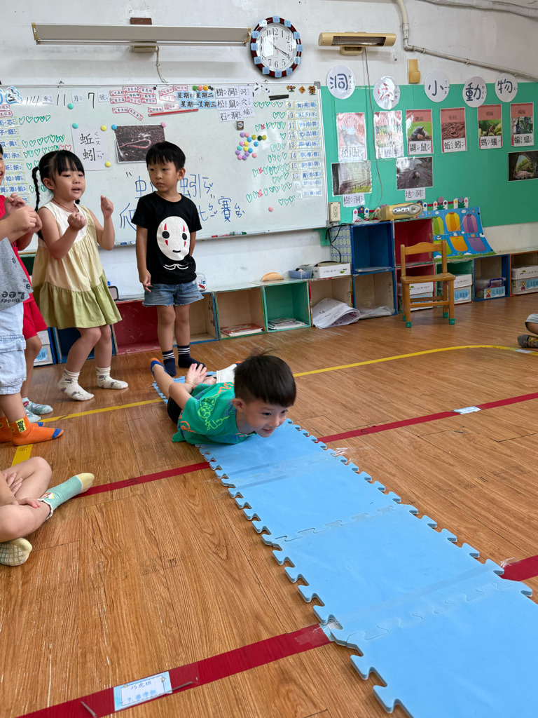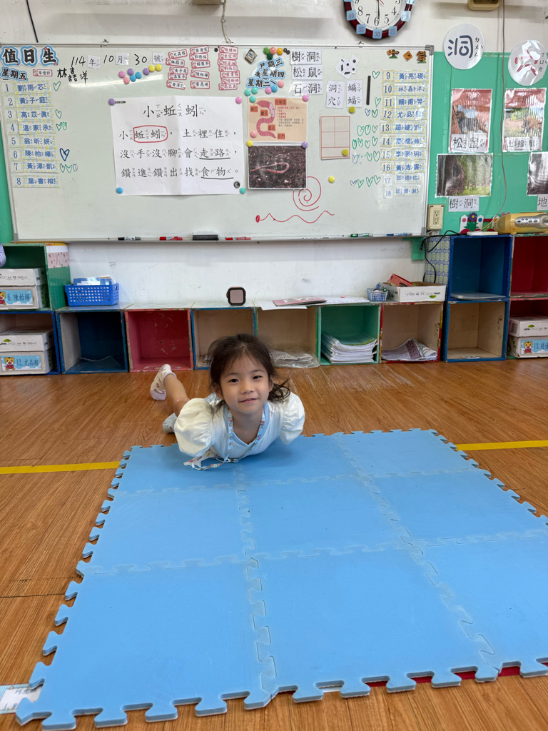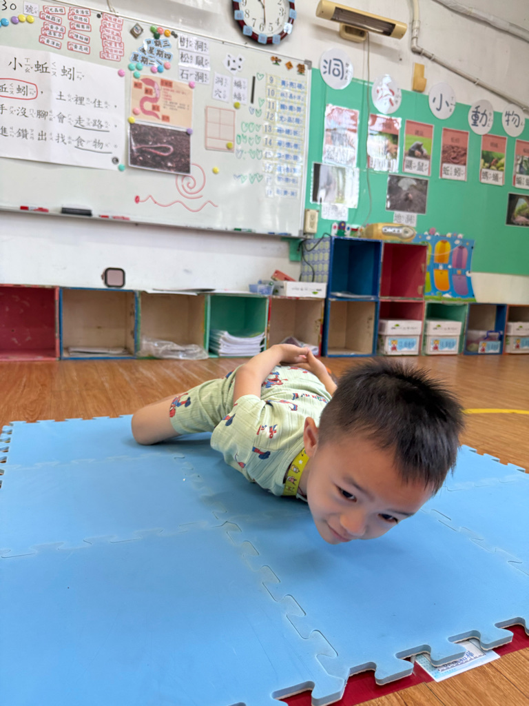 小蚯蚓沒手沒腳怎麼走路呢 一起用學蚯蚓用身體爬行 大家一起比賽