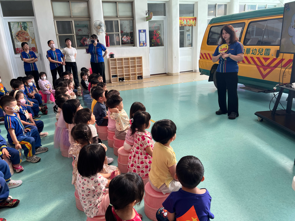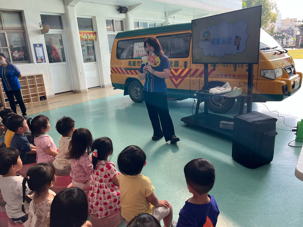 老師教導我們坐娃娃車要注意安全,怎麼保護自己