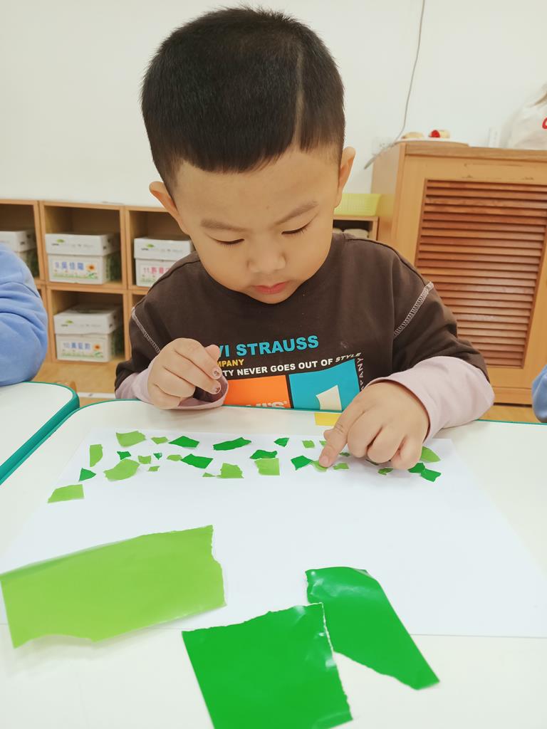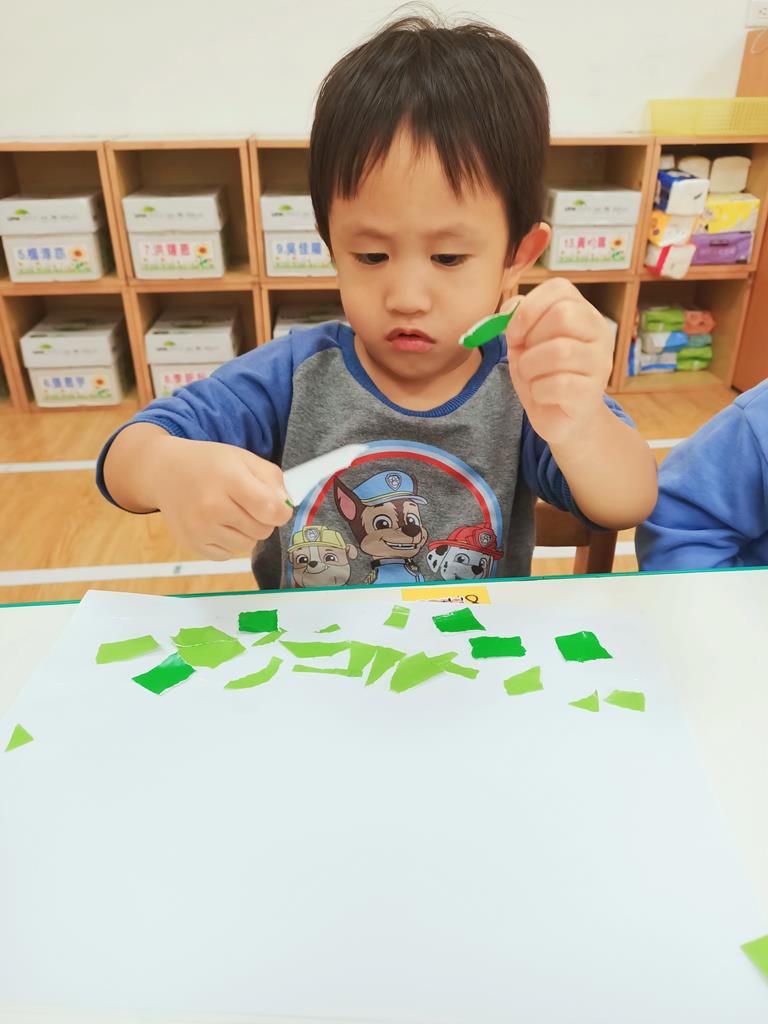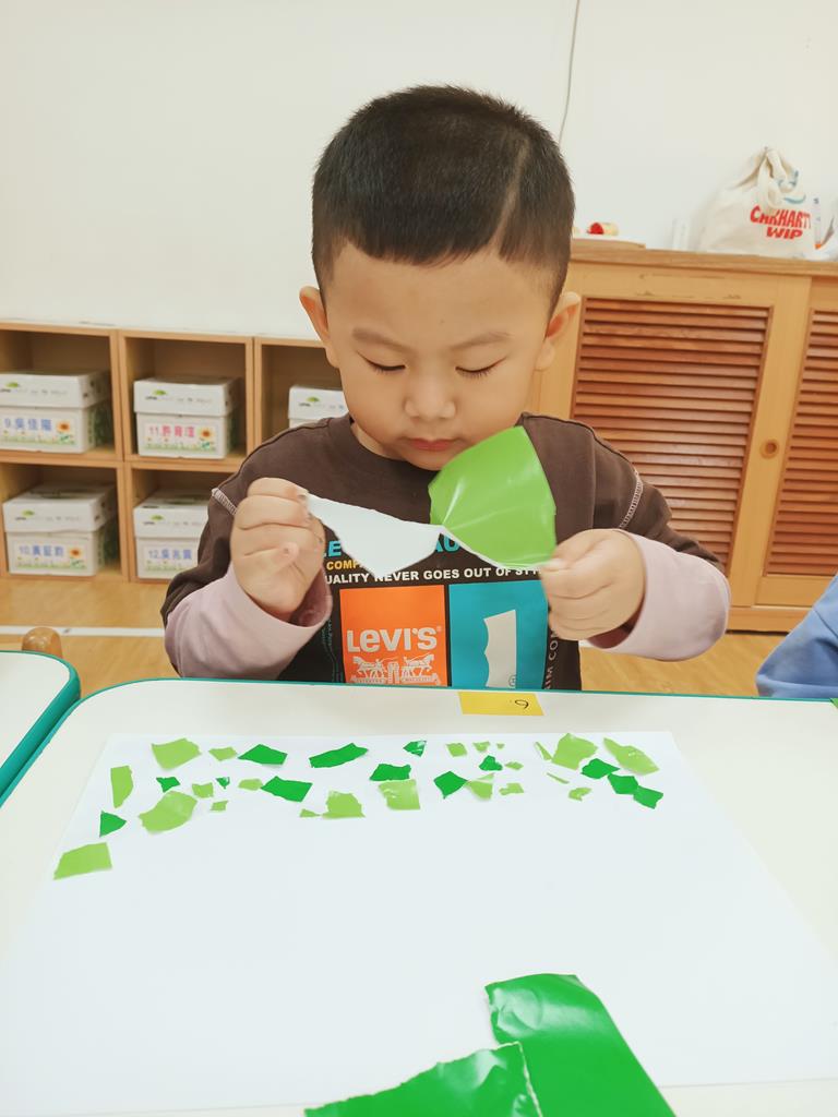色紙撕一撕貼樹葉