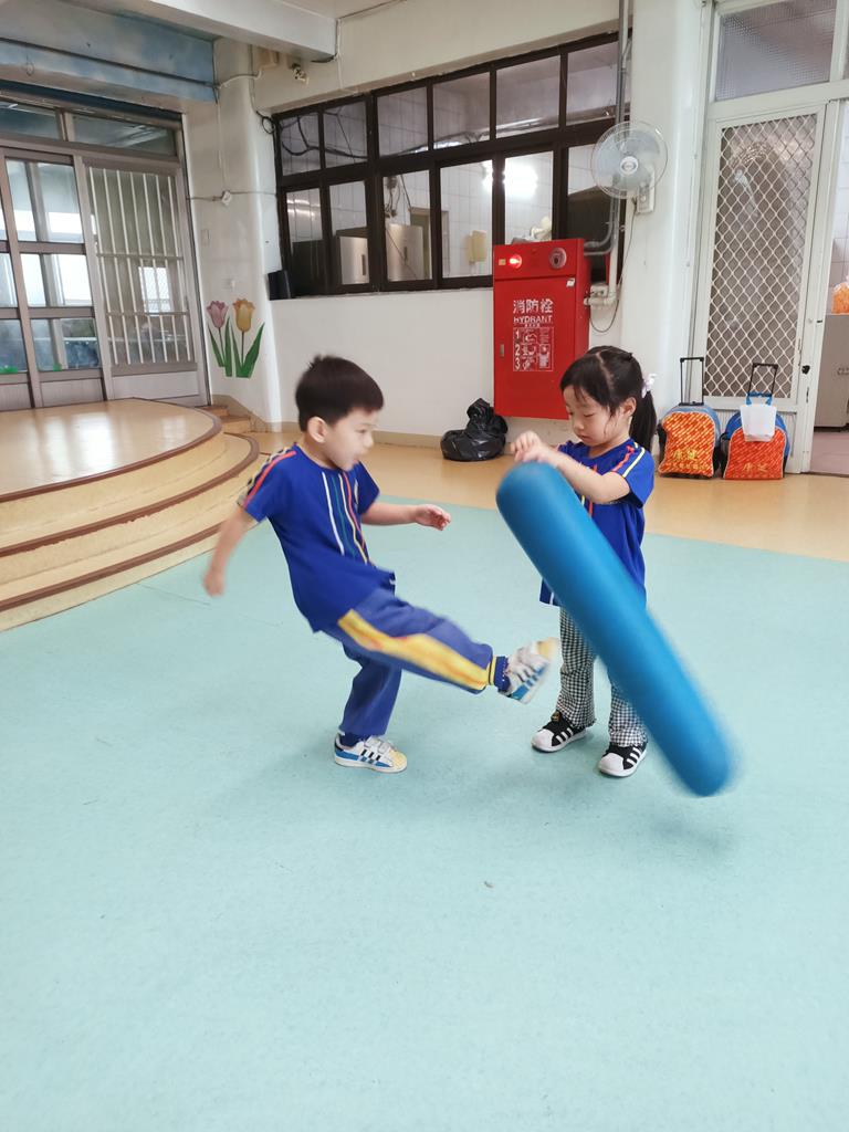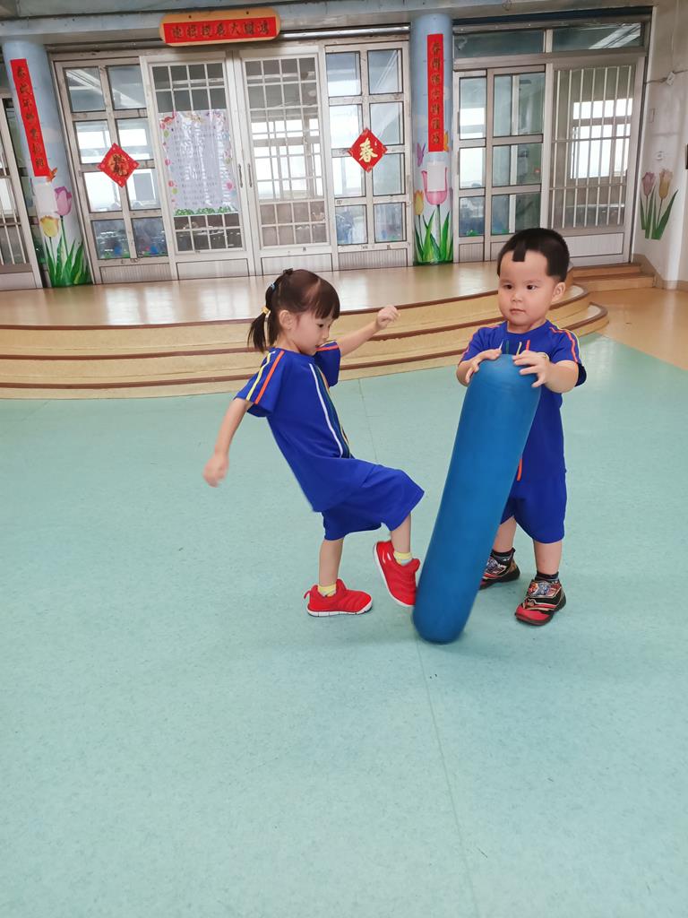 和好朋友輪流踢腿