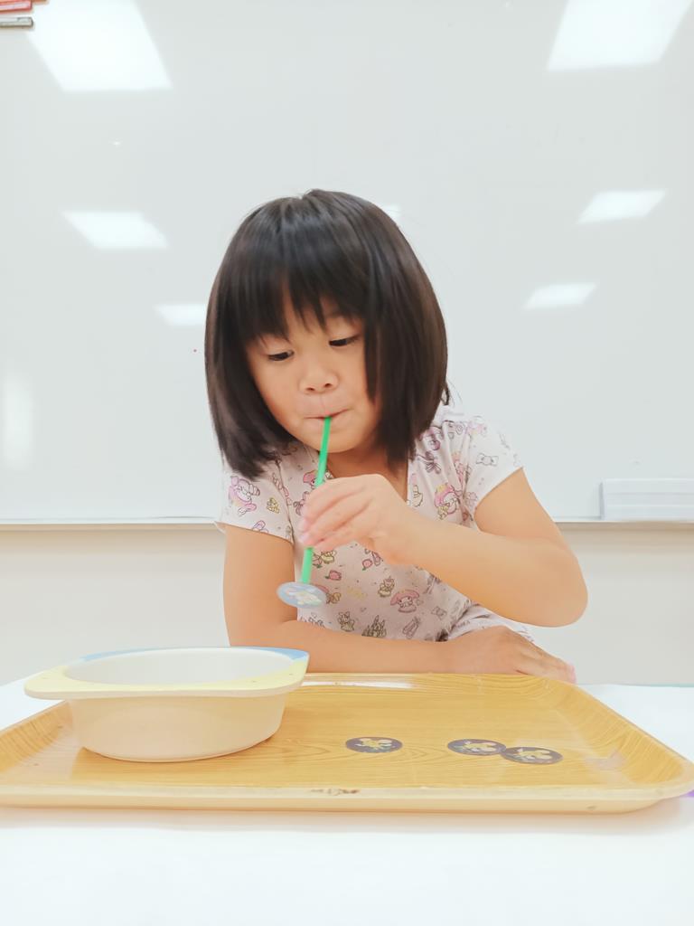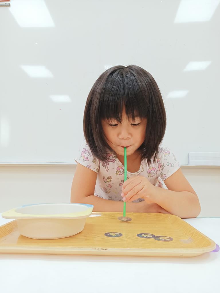 用粗細不同的吸管將小圓片吸起來