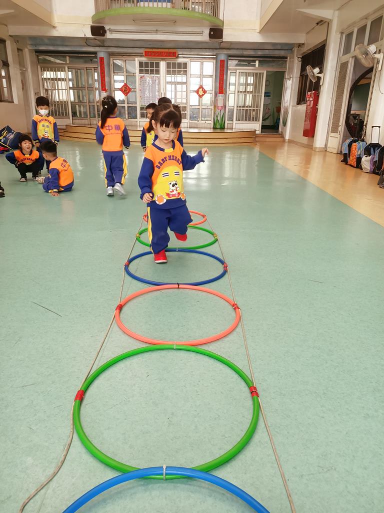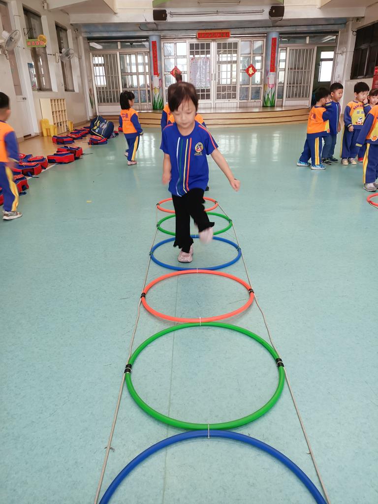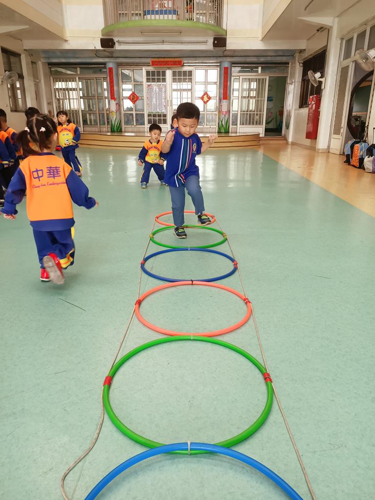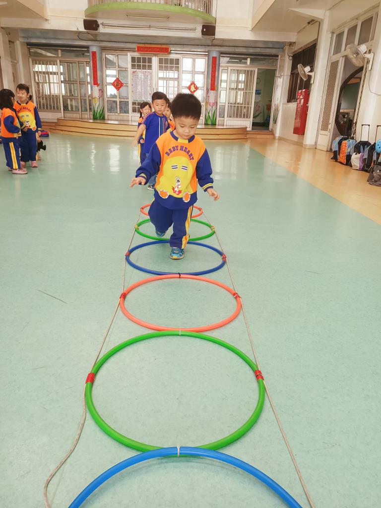 用跳的方式、左右跳的方式穿過呼啦圈串