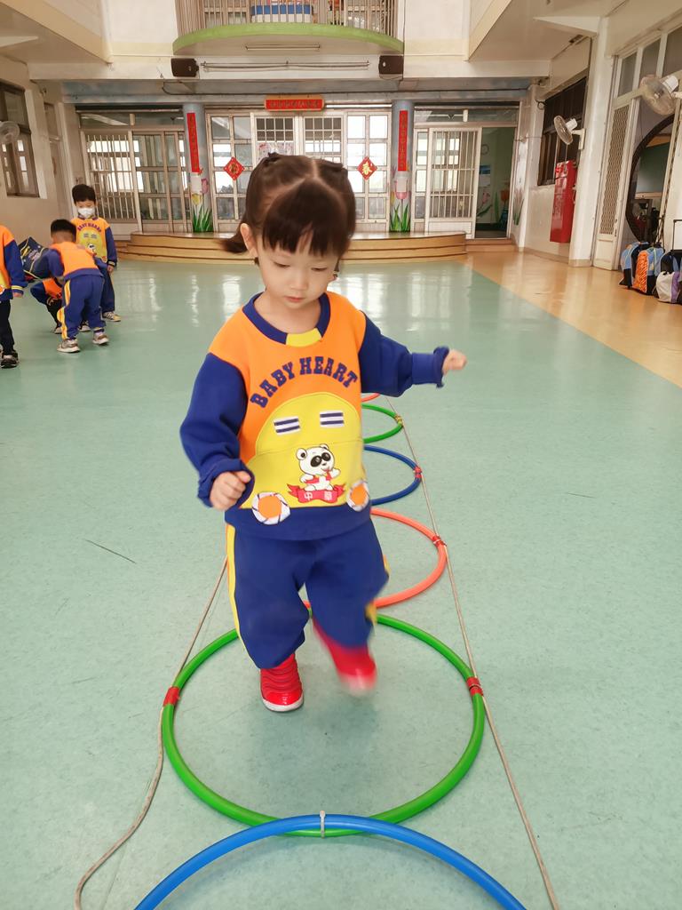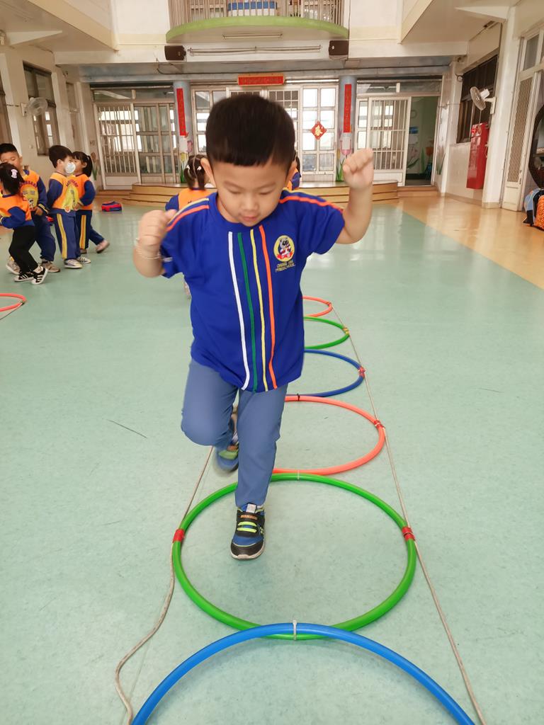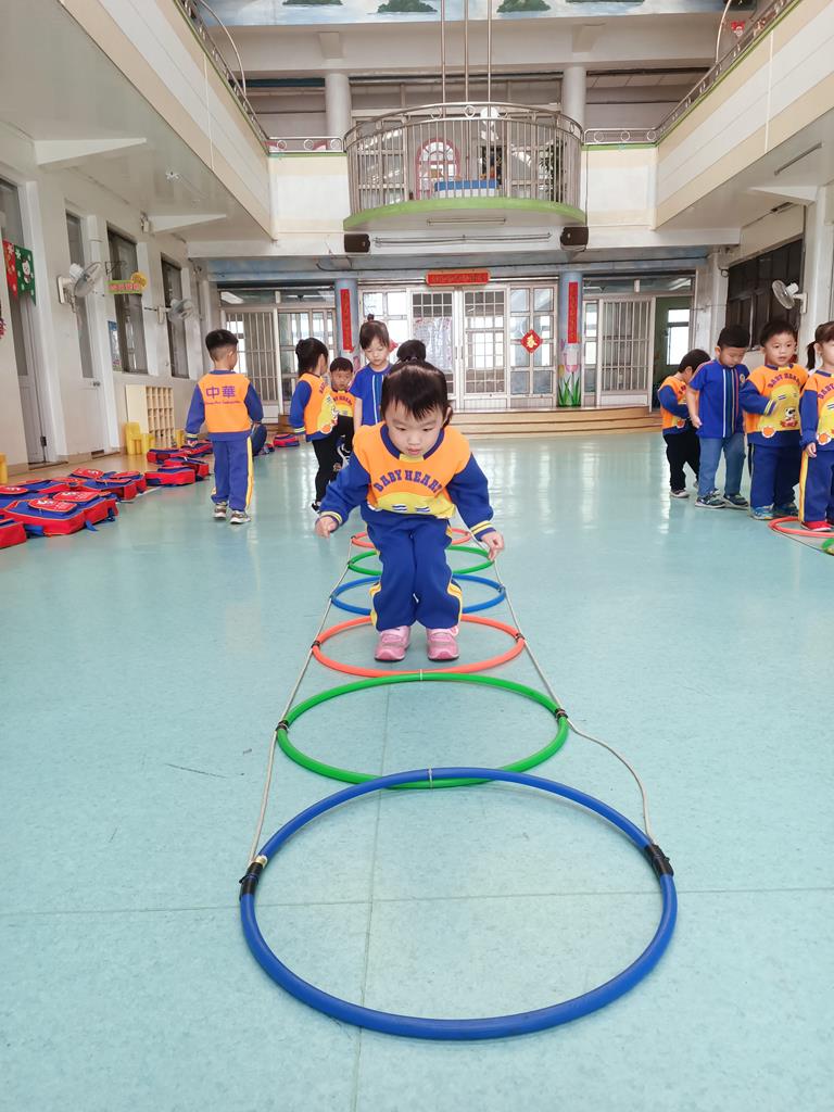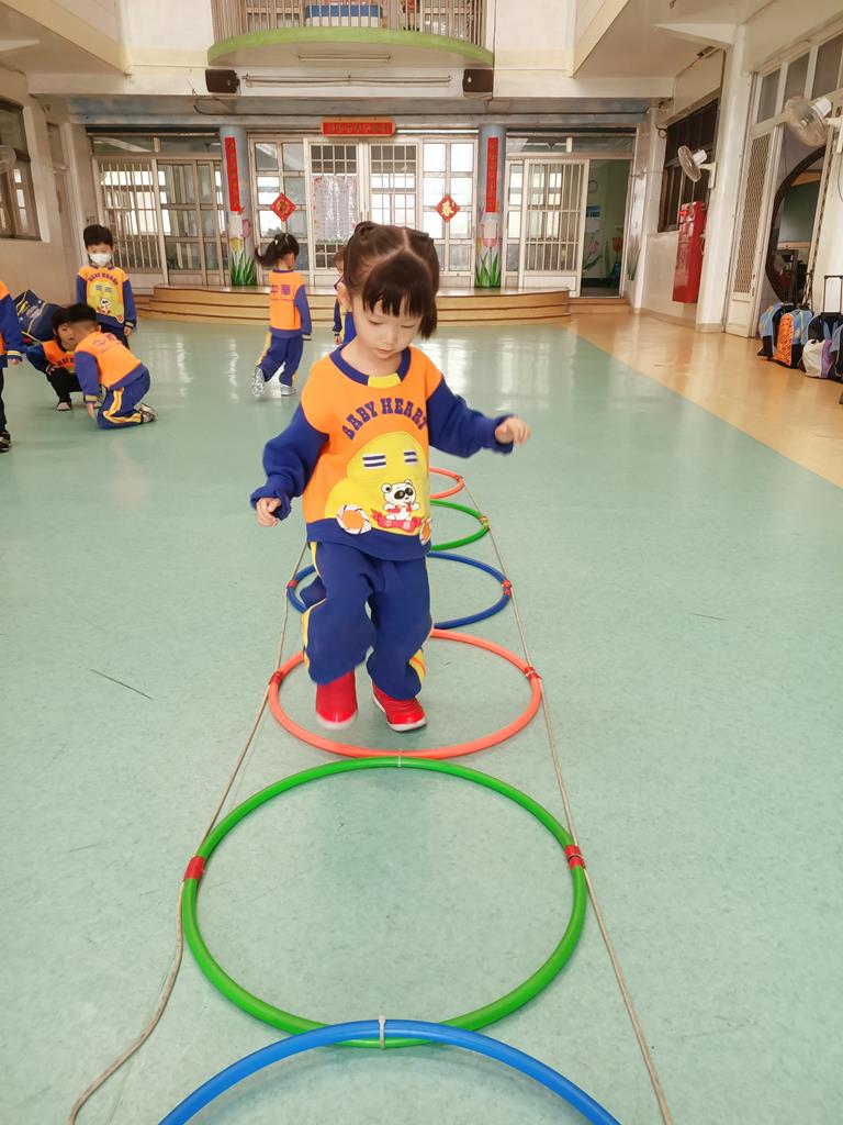 用跳的方式、左右跳的方式穿過呼啦圈串