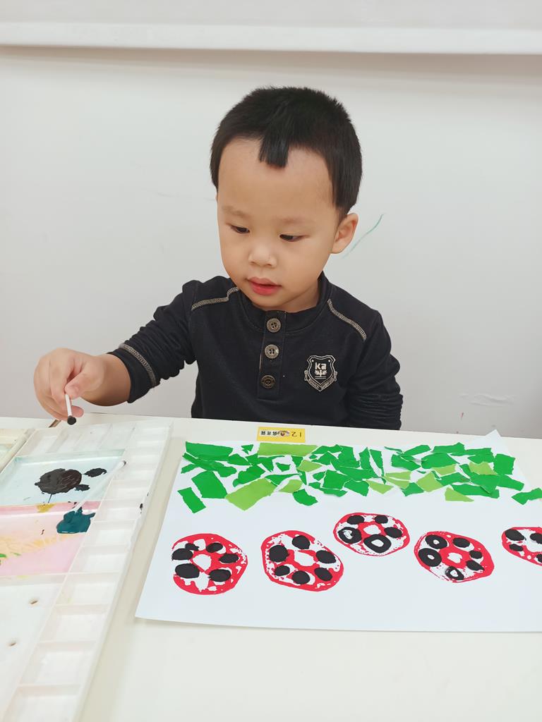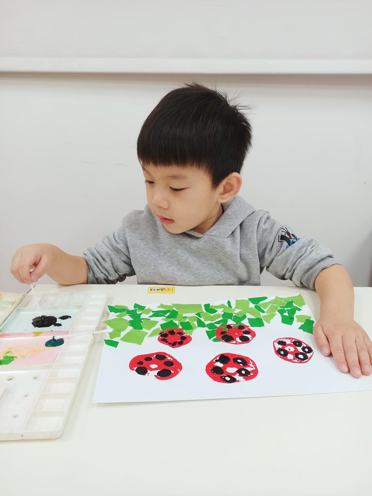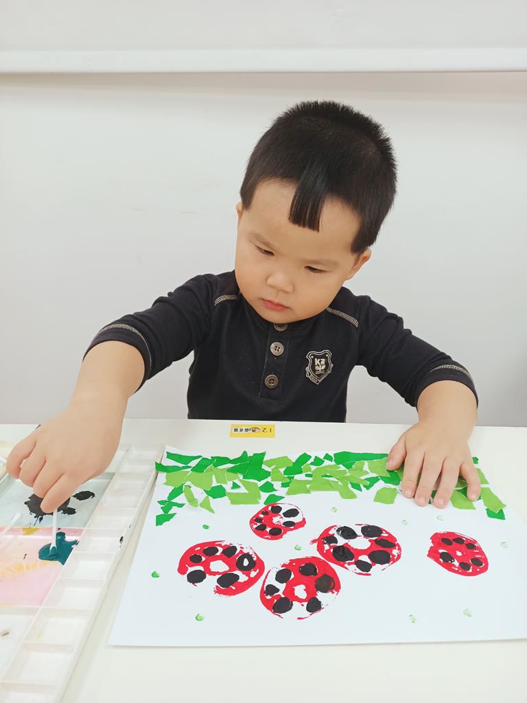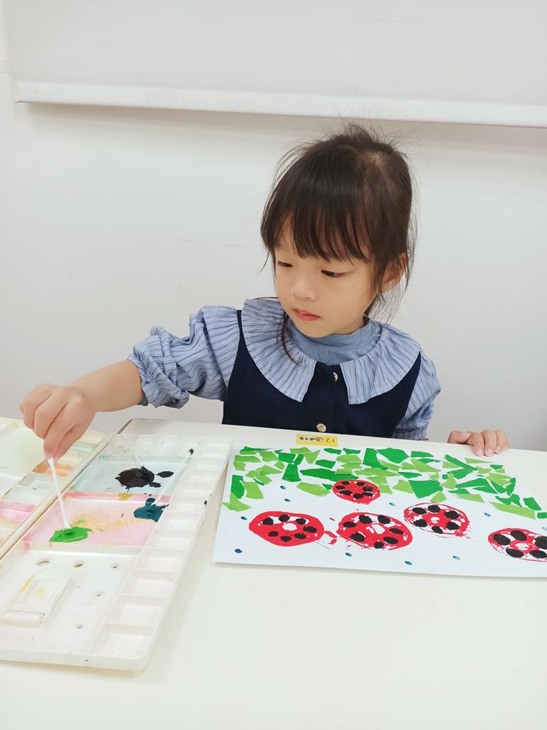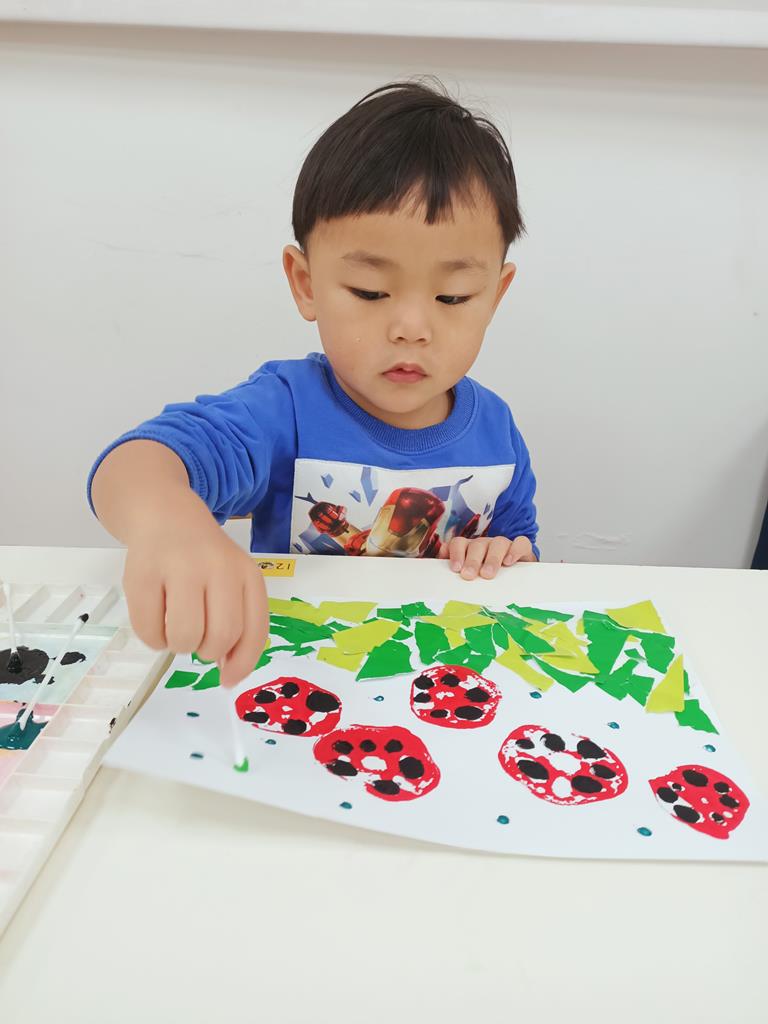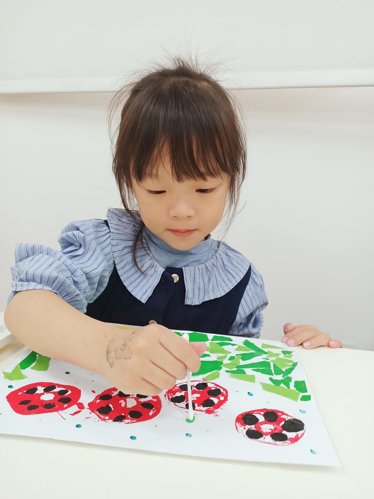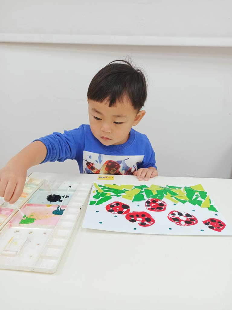瓢蟲的身體塗上小圓點、點一點