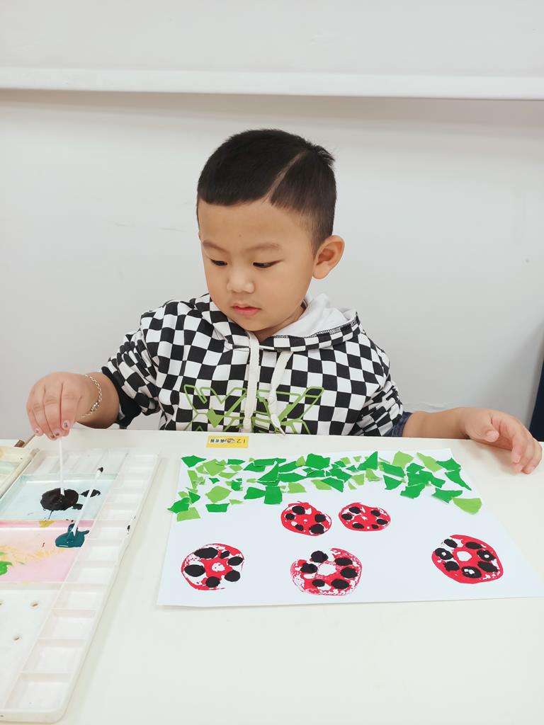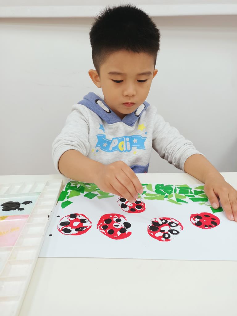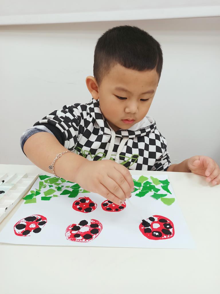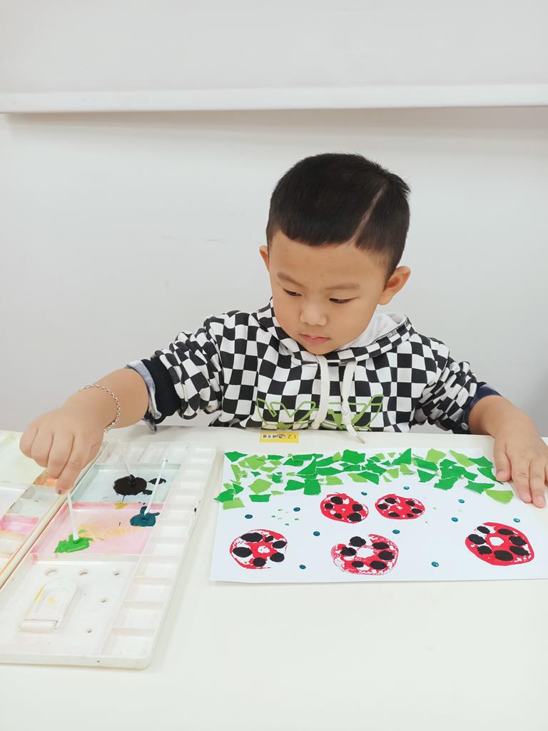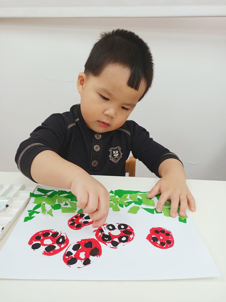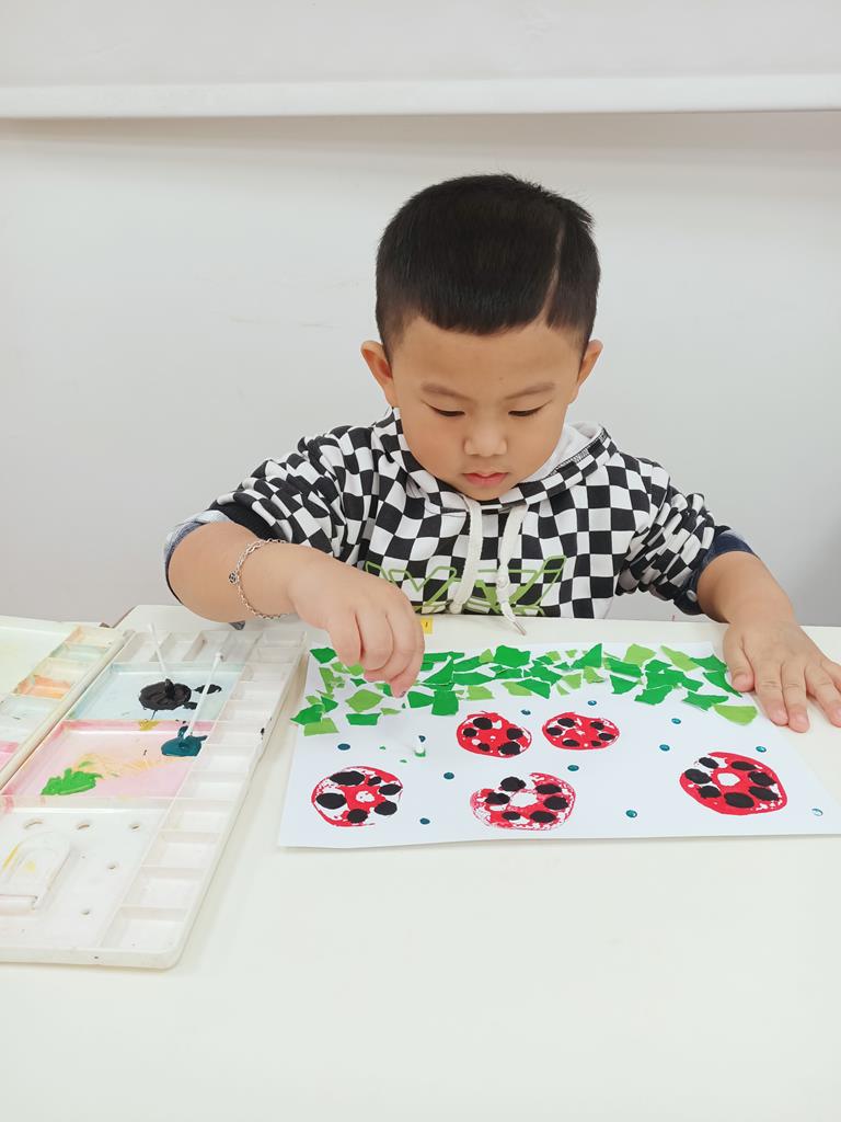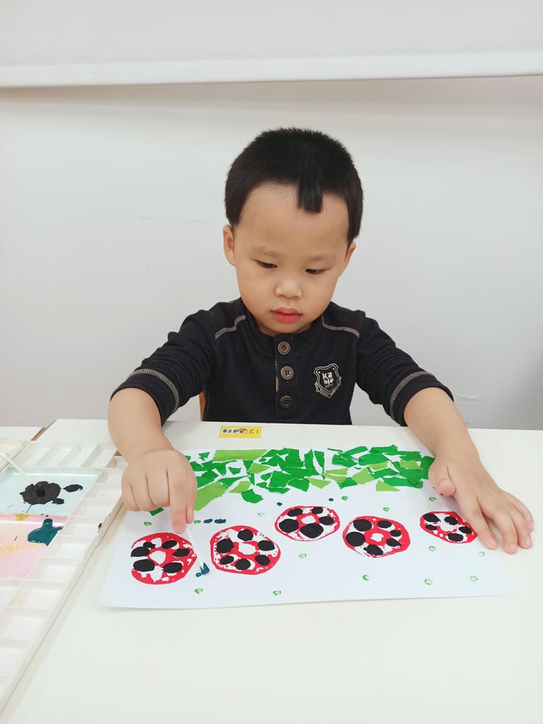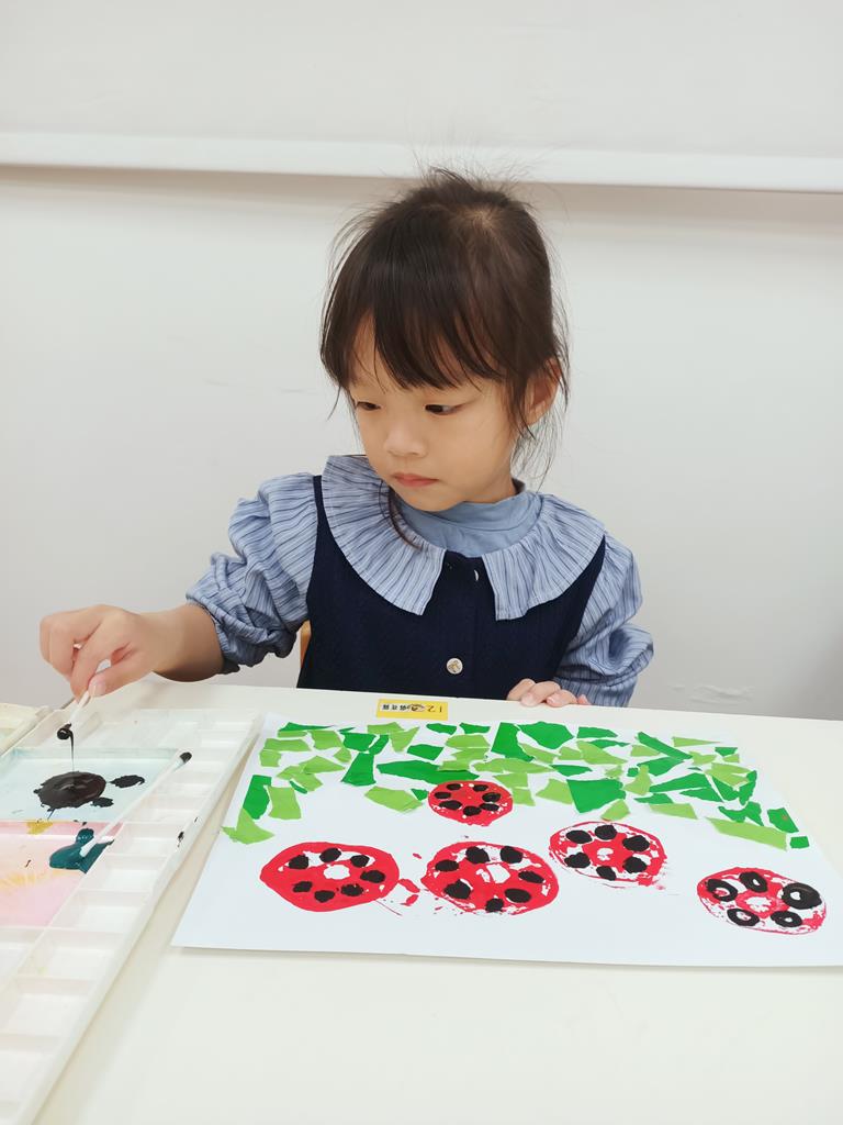 瓢蟲的身體塗上小圓點、點一點