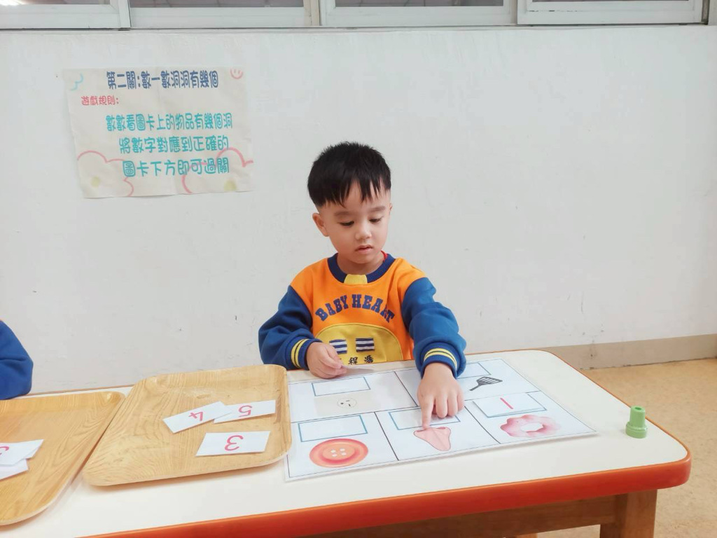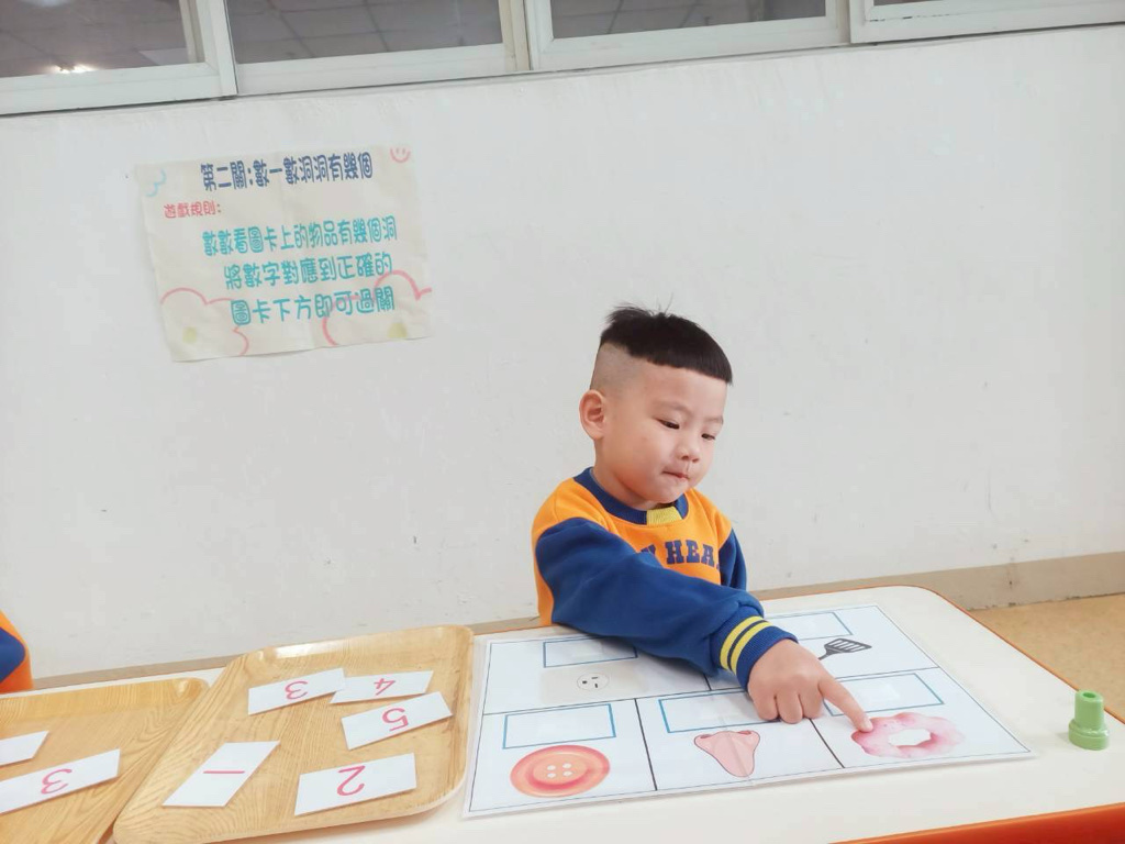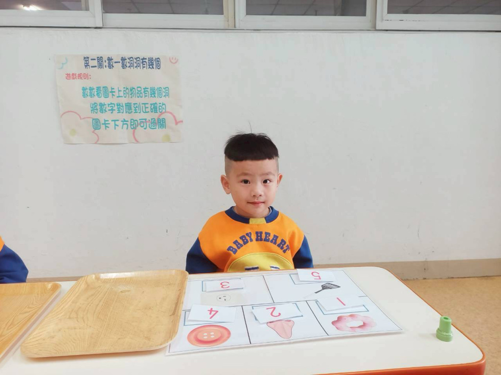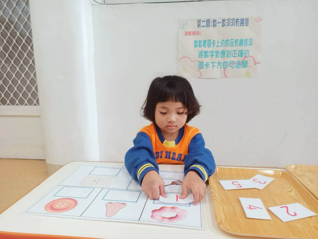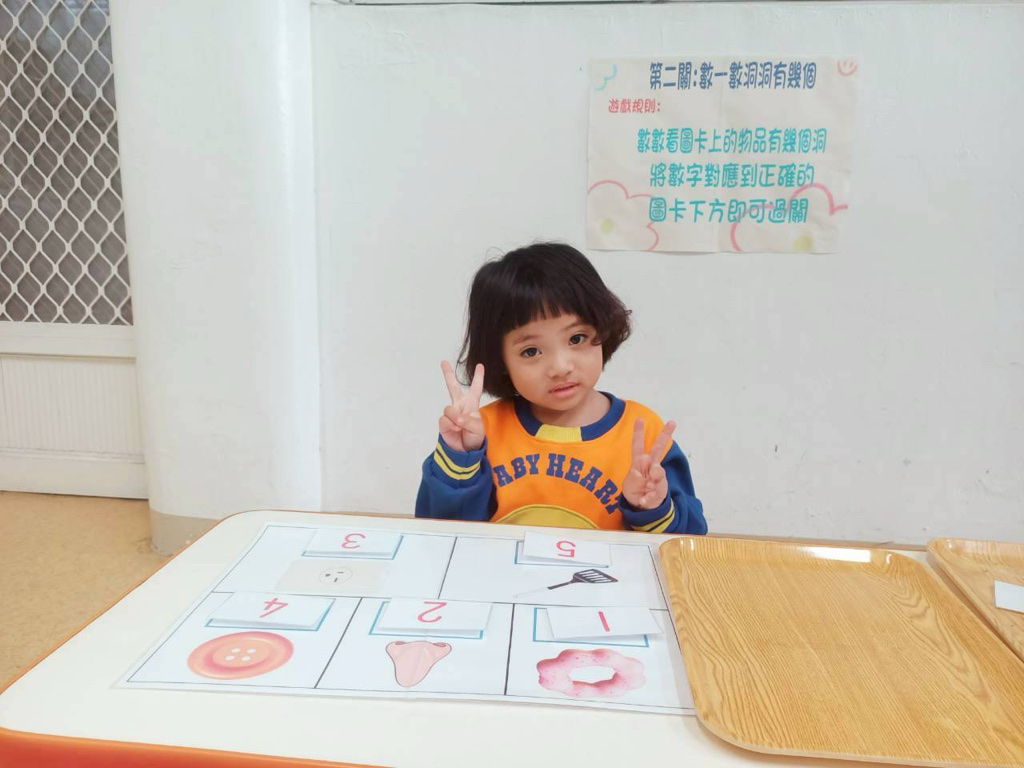 第二關~數一數有幾個洞,先數數圖片上物品洞的數量再將對應數字貼上!