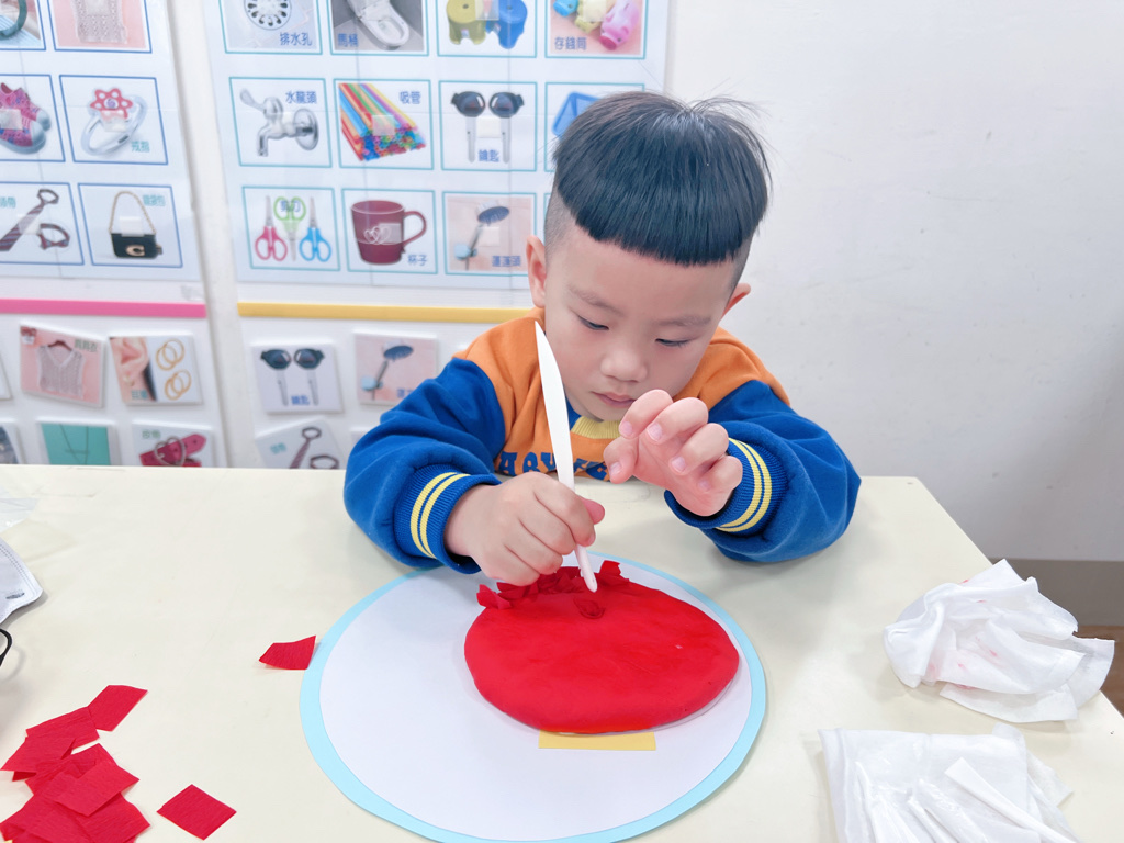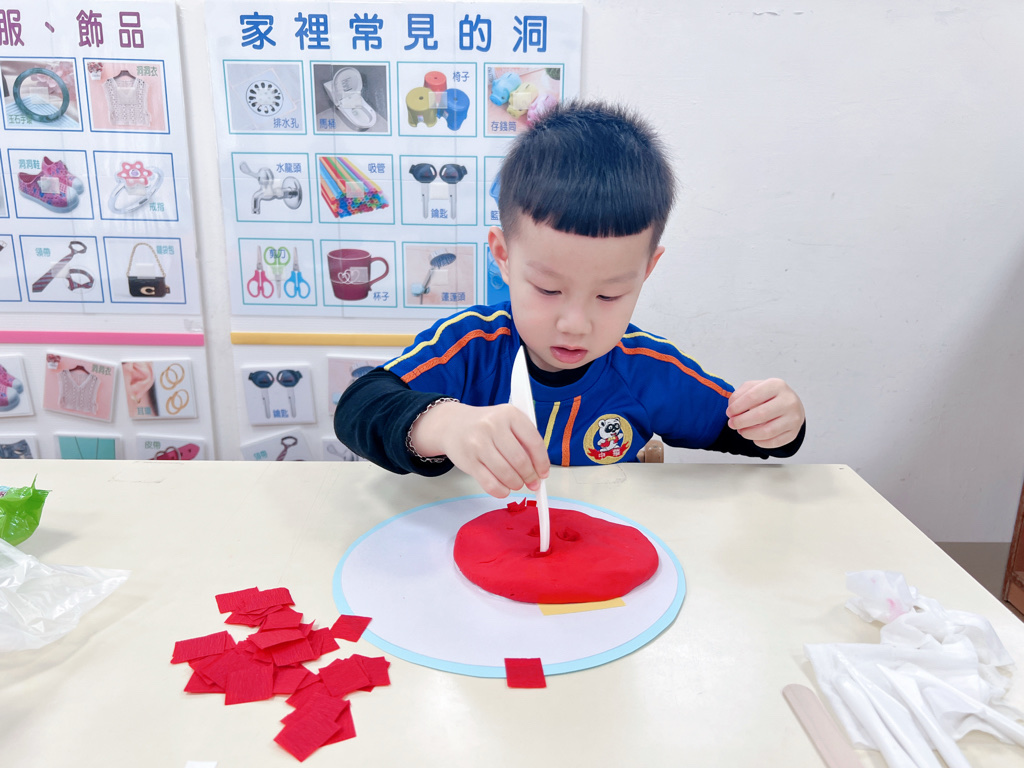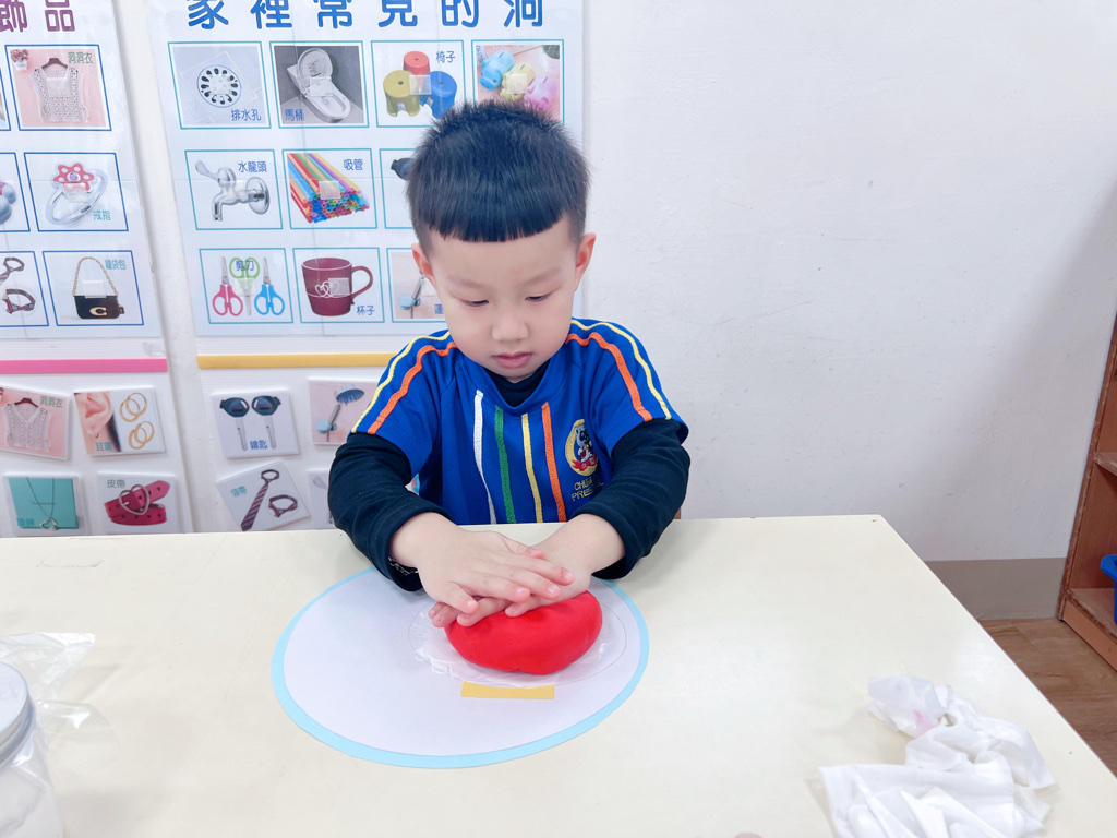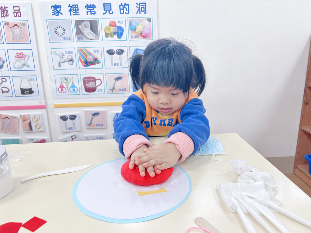 先將黏土壓在紙上朔型燈籠底座,再拿工具將紙戳進去!