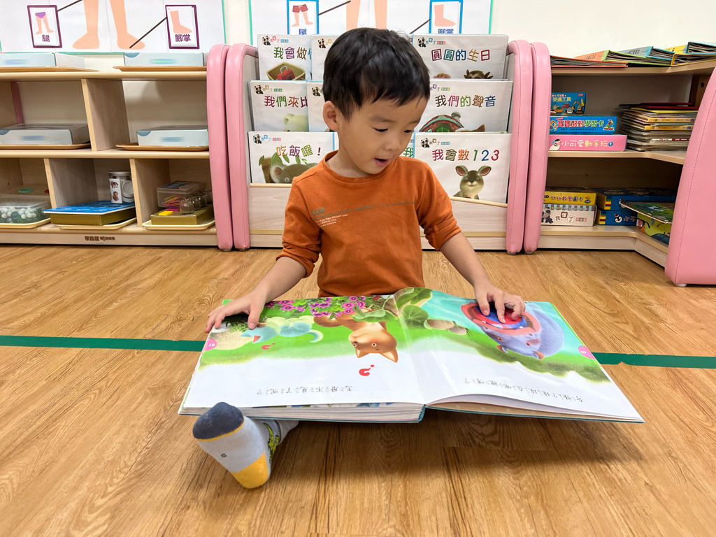 我們很高興聽故事並專心看書喔